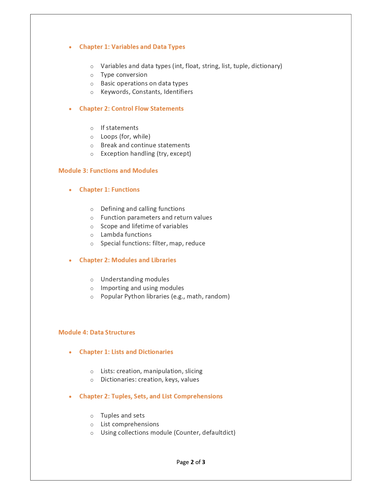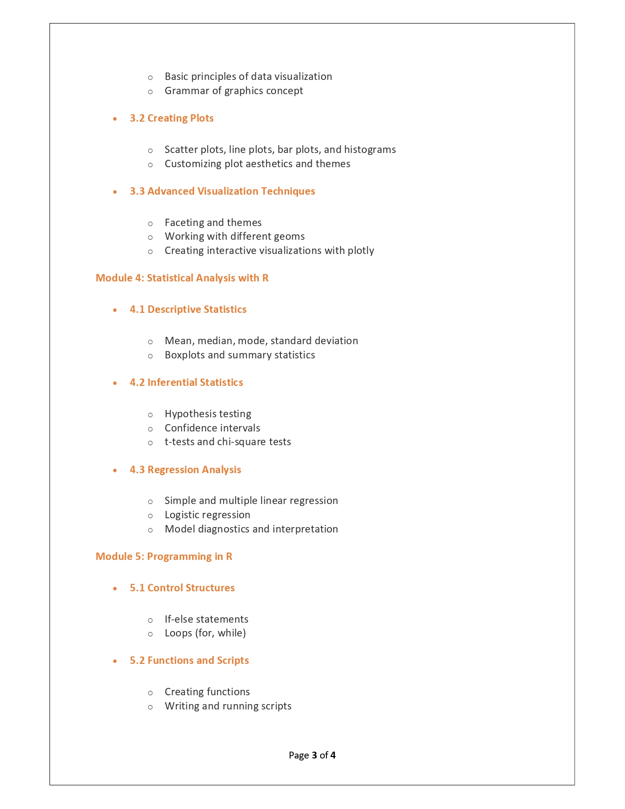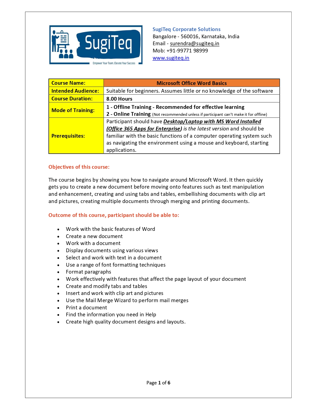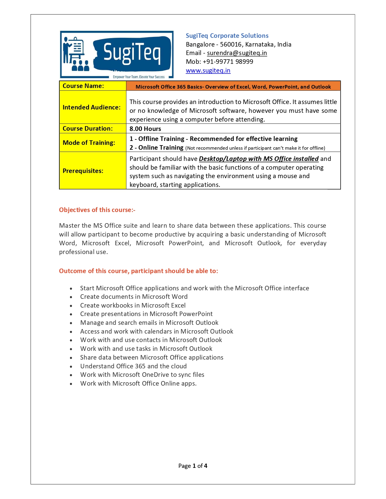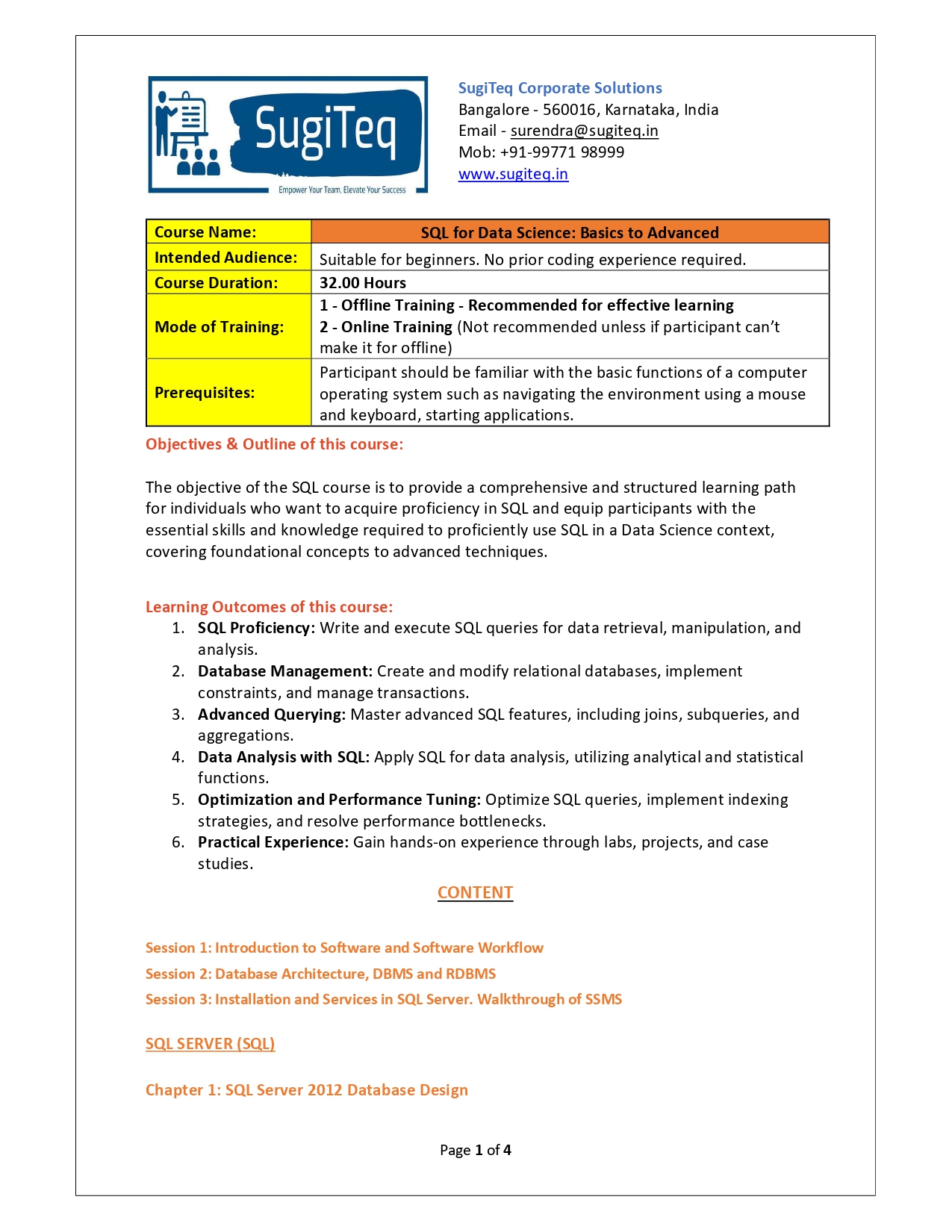 | Training Programmes | No of hours required (Aprox.) | Course Conent |