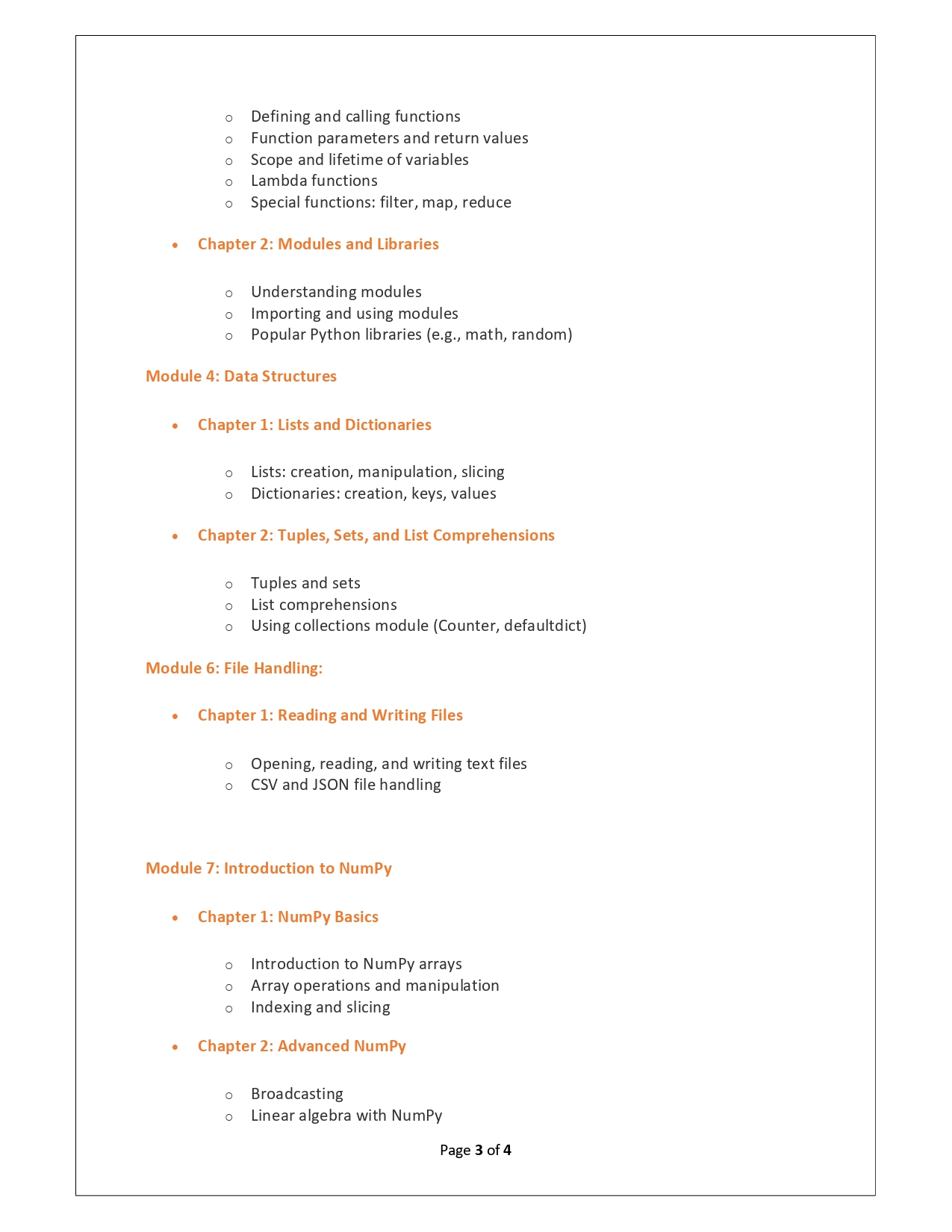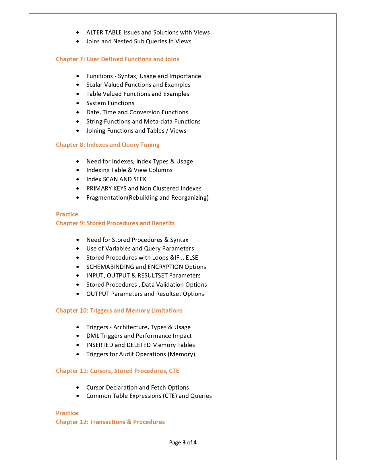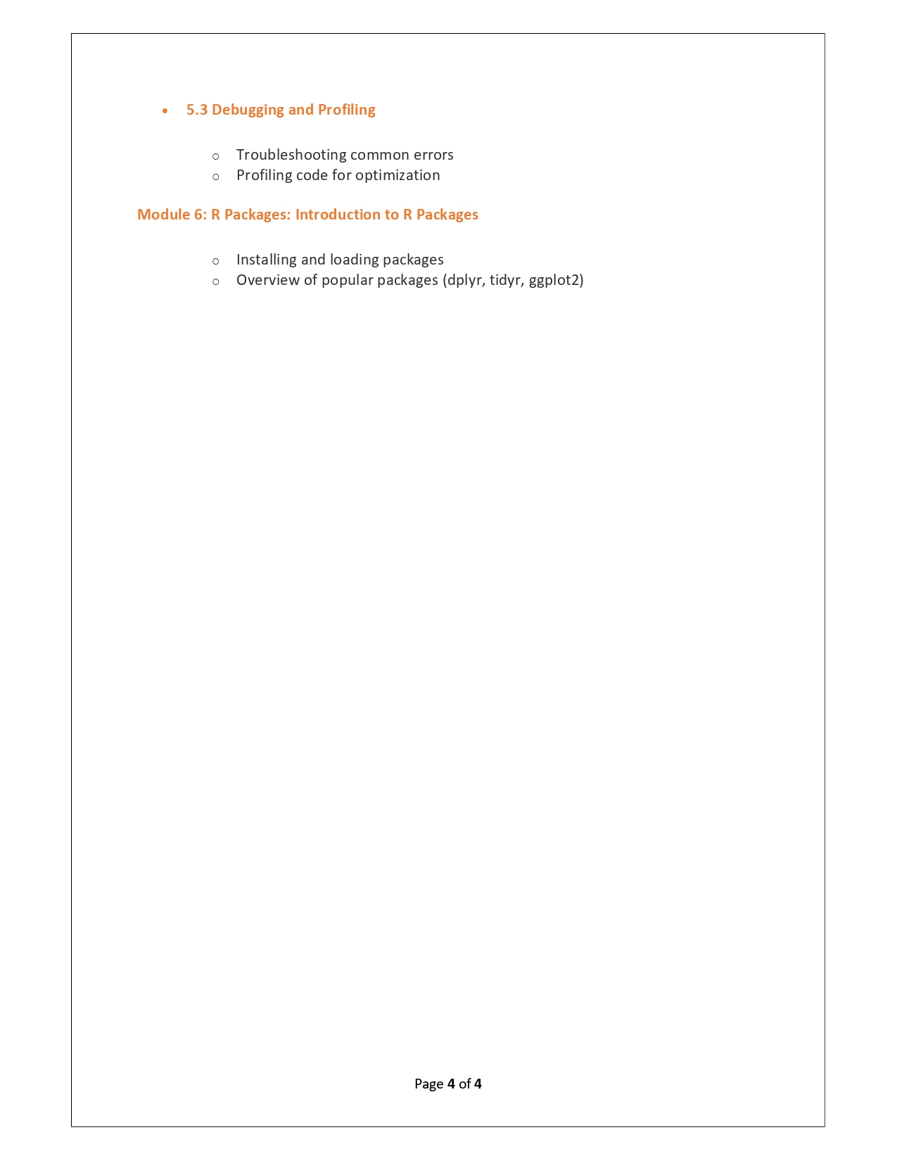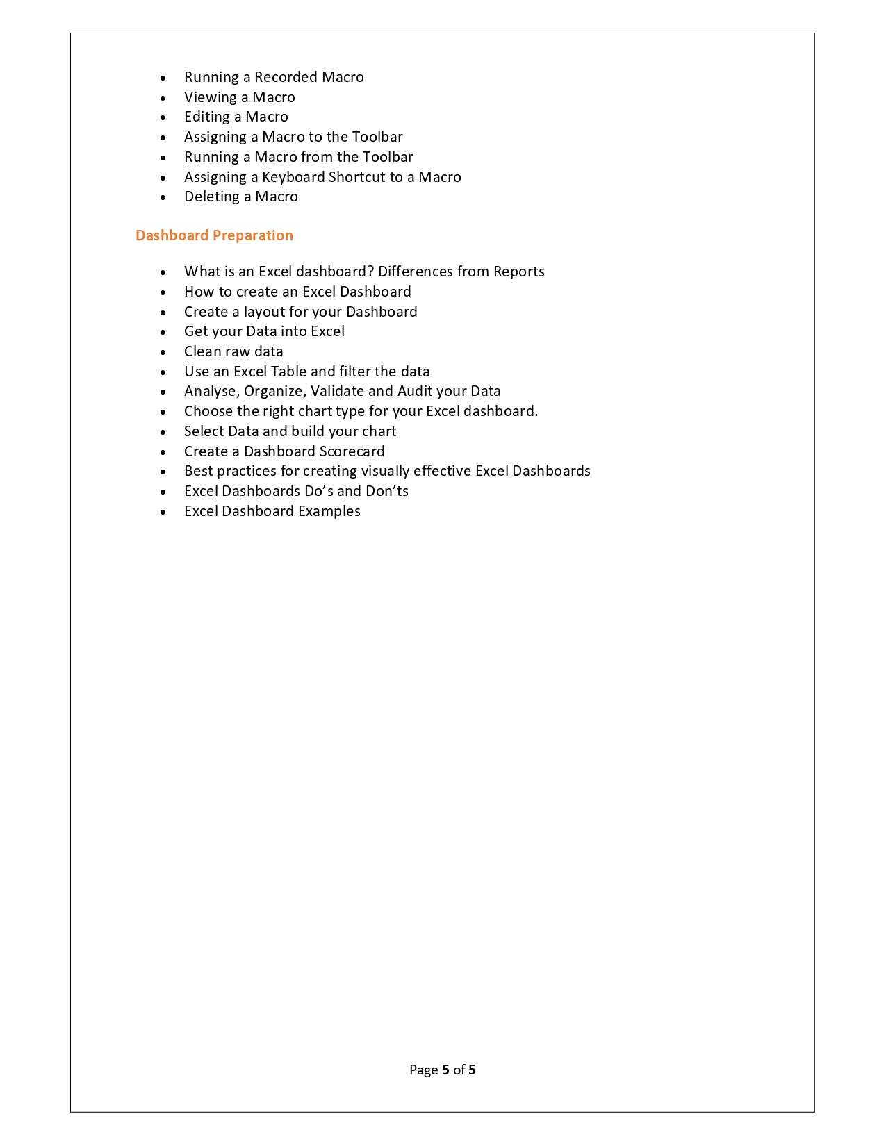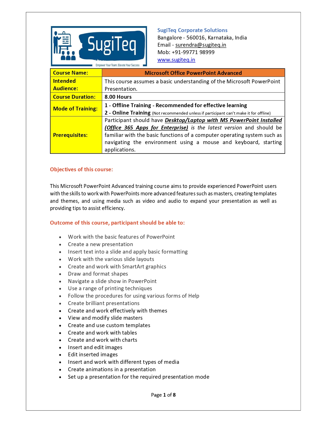 | Training Programmes | No of hours required (Aprox.) | Course Conent |