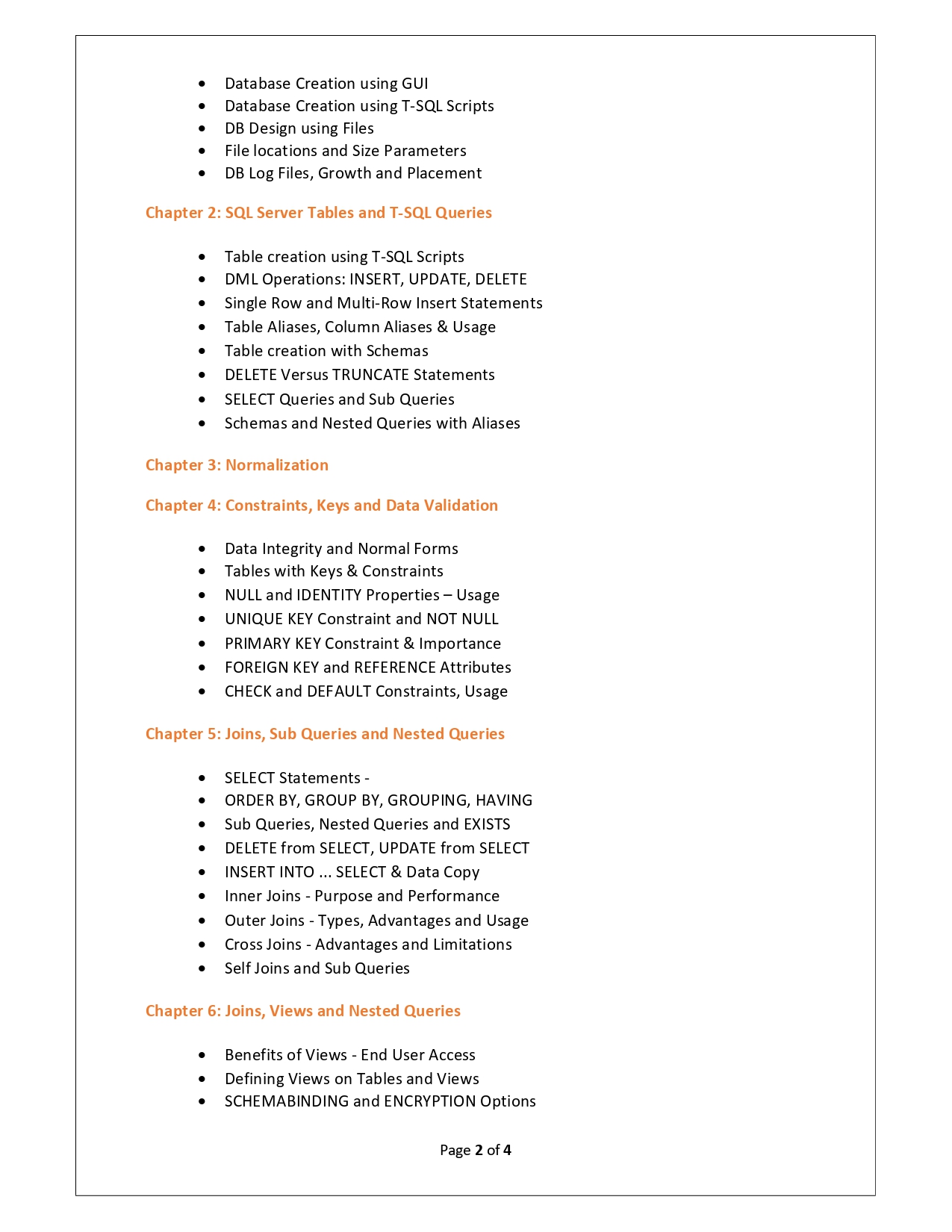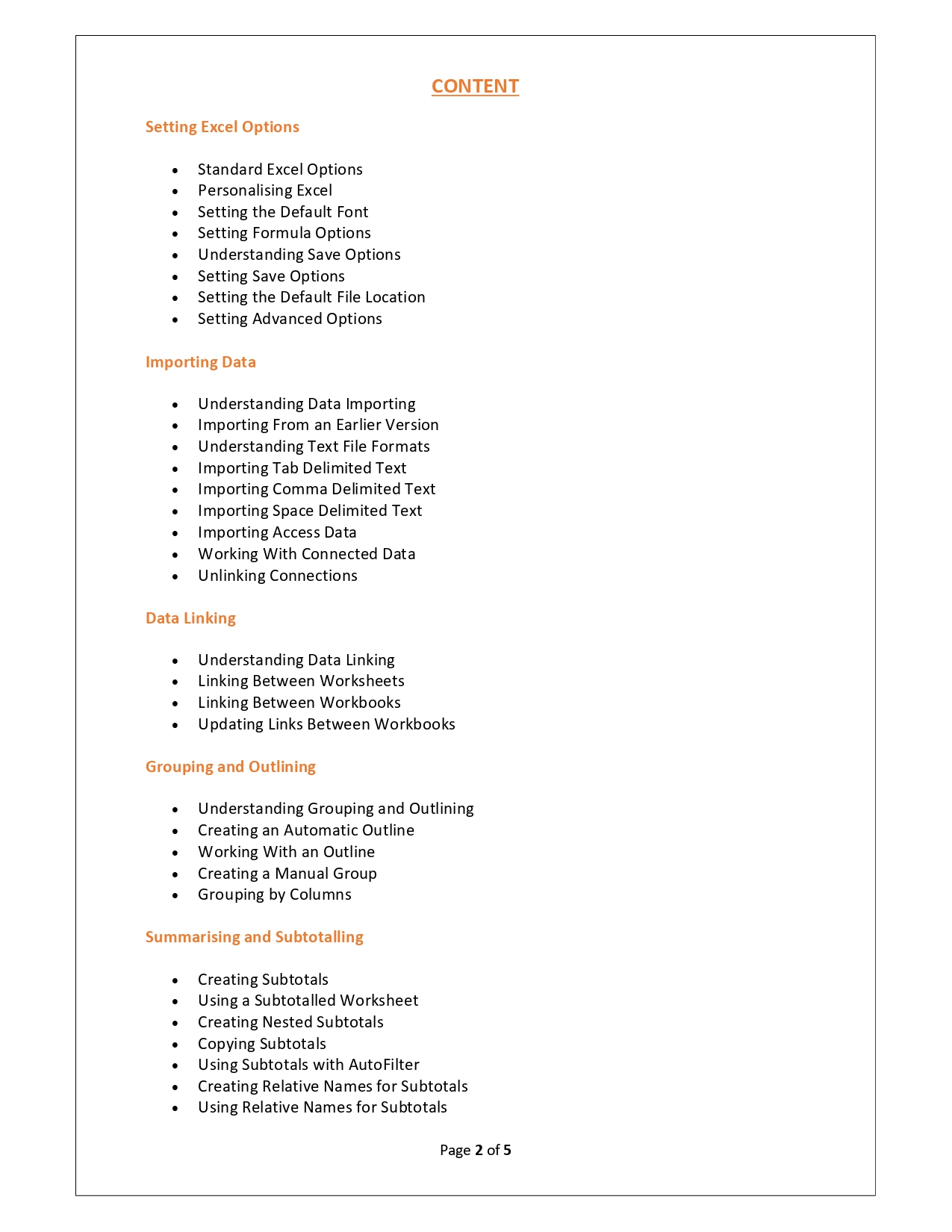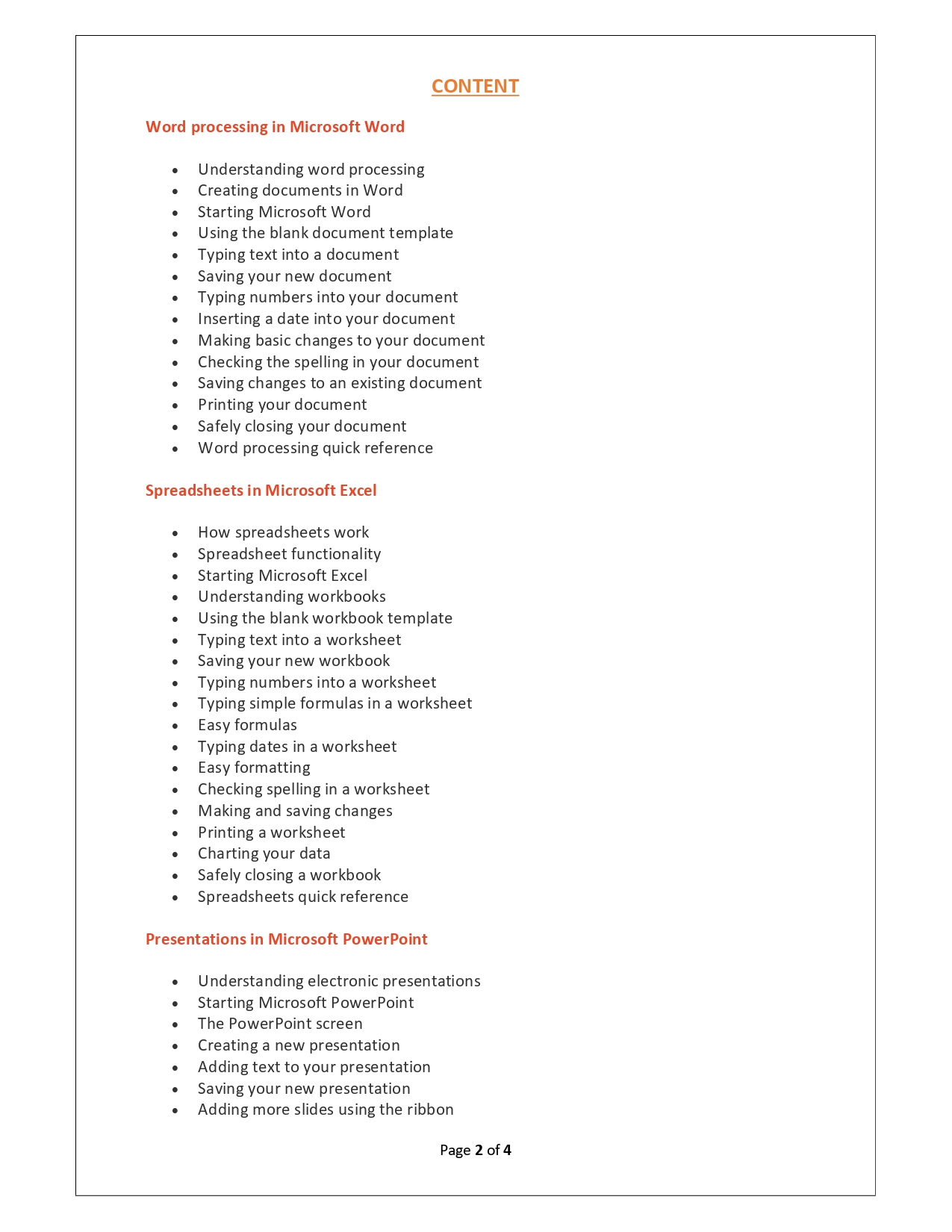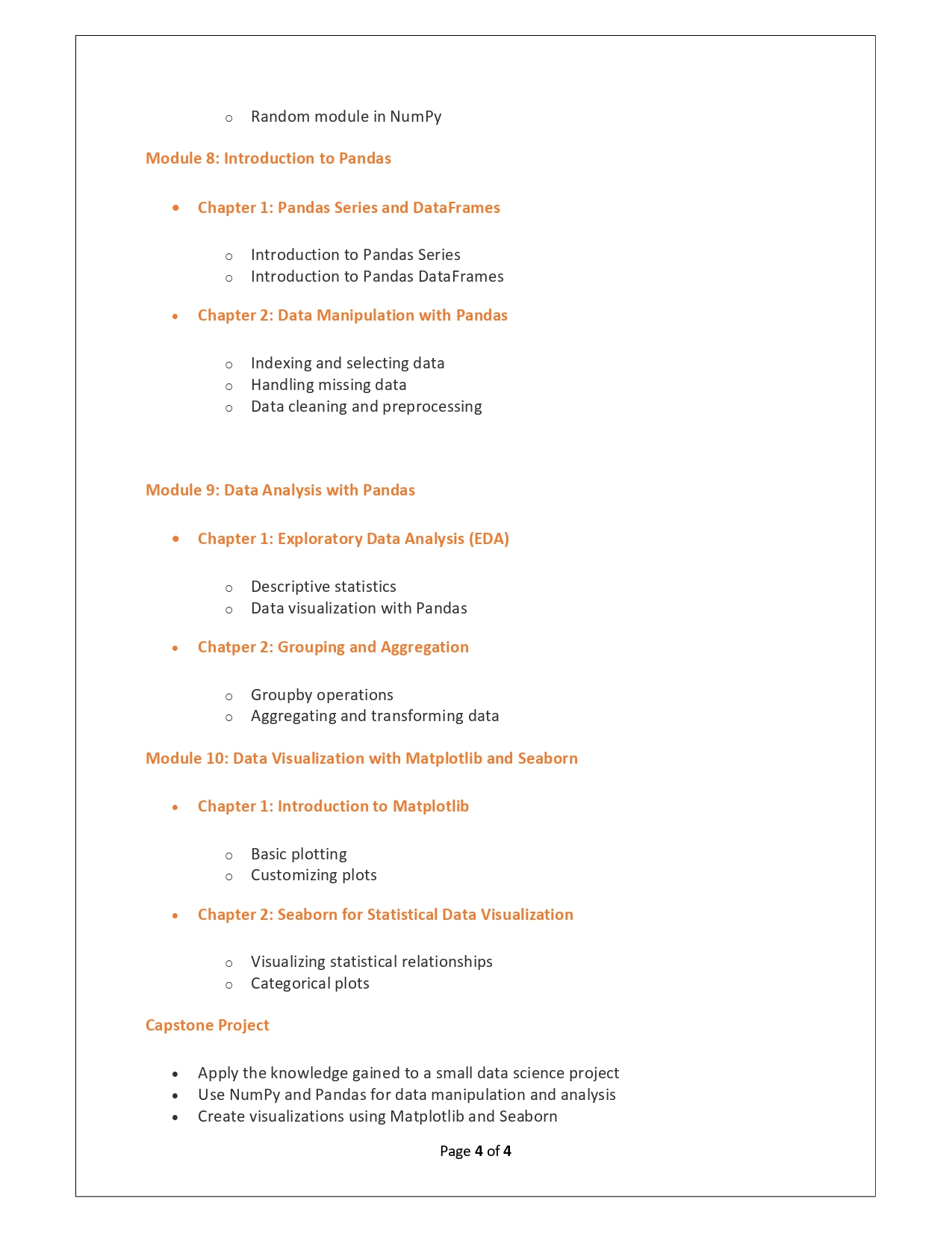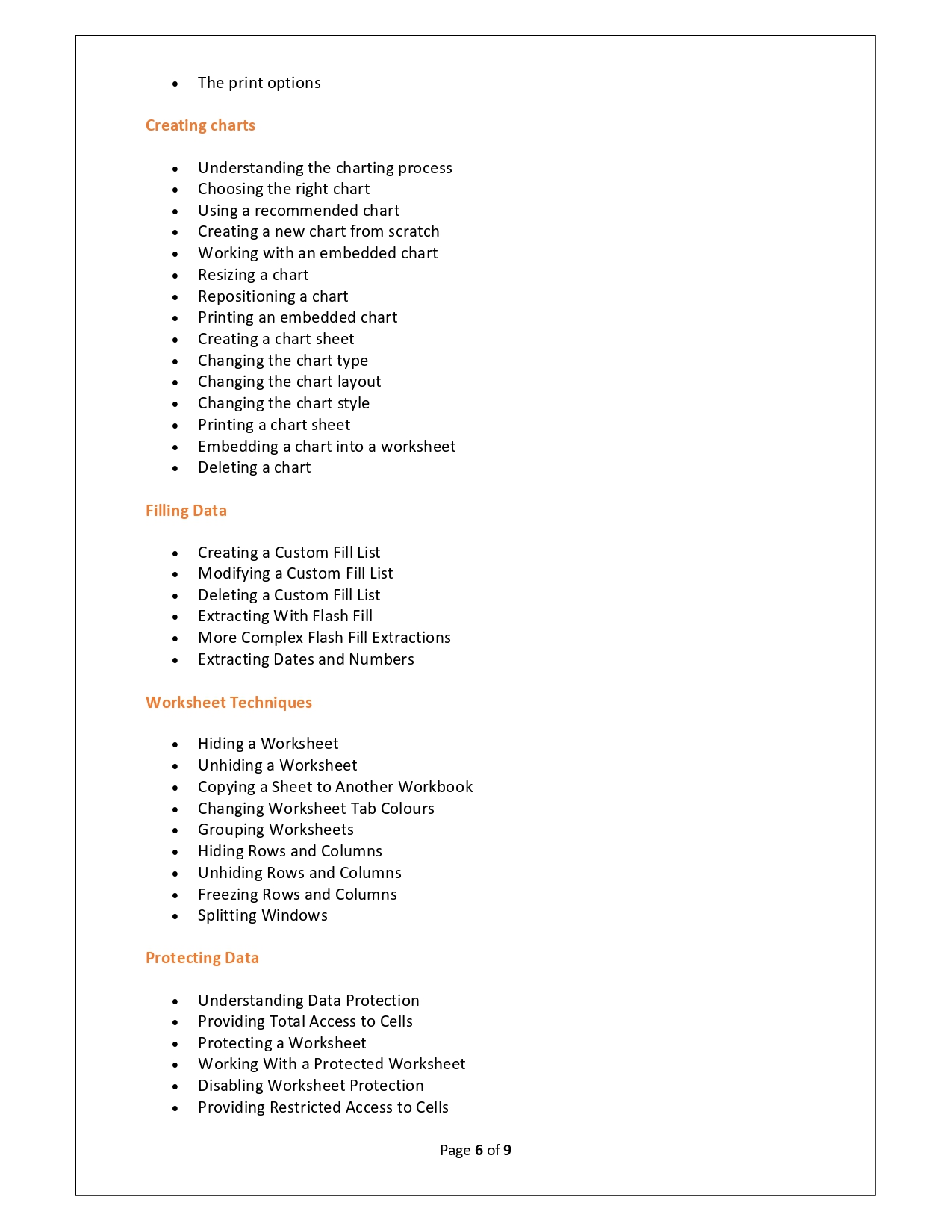 | Training Programmes | No of hours required (Aprox.) | Course Conent |