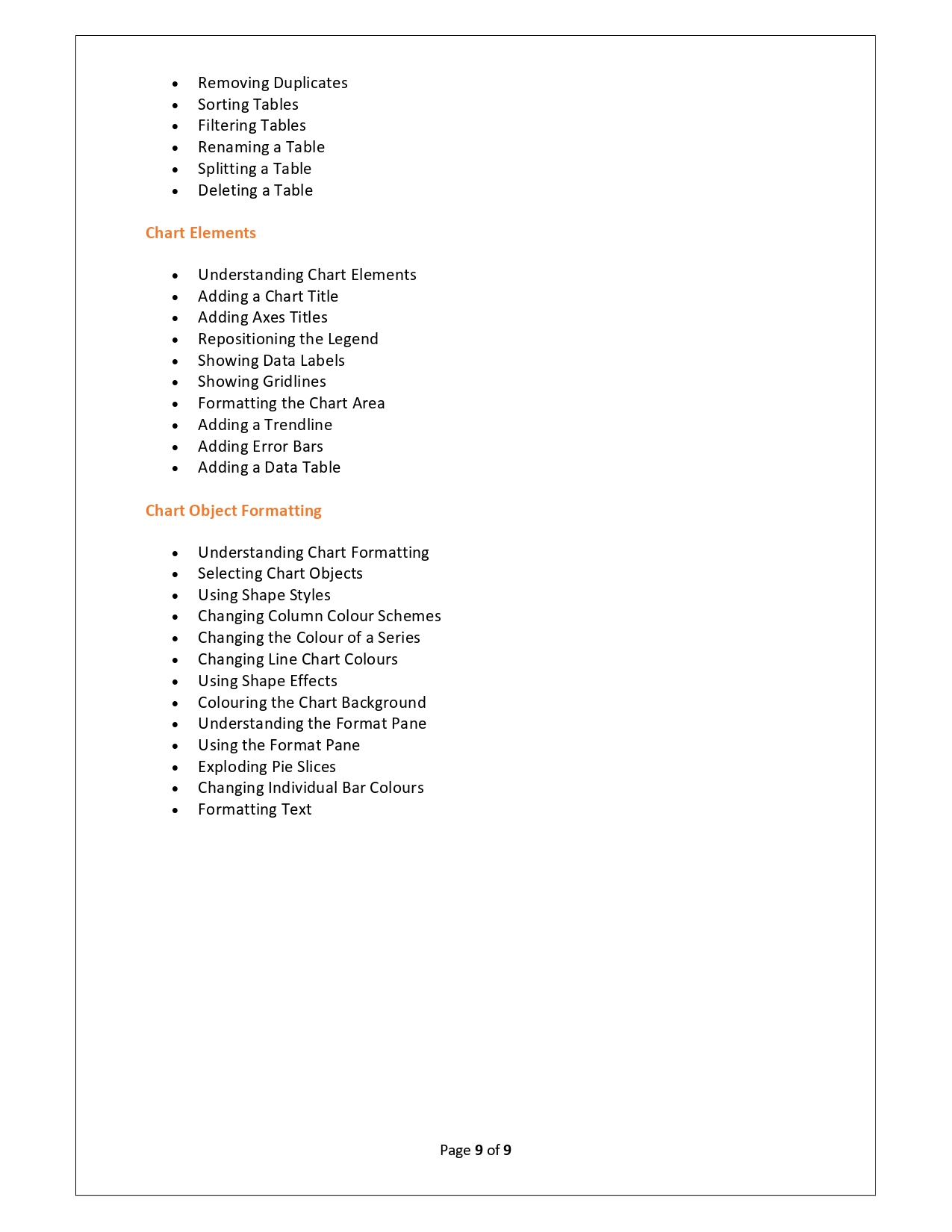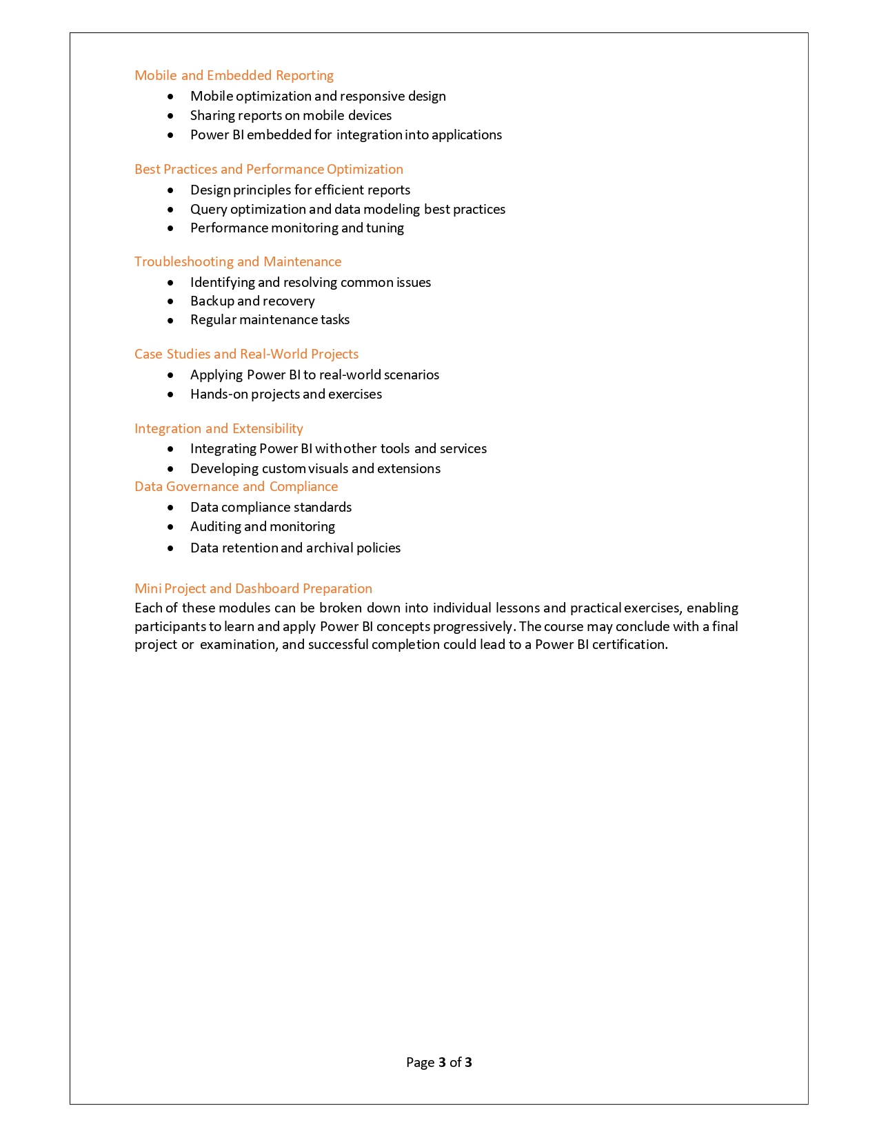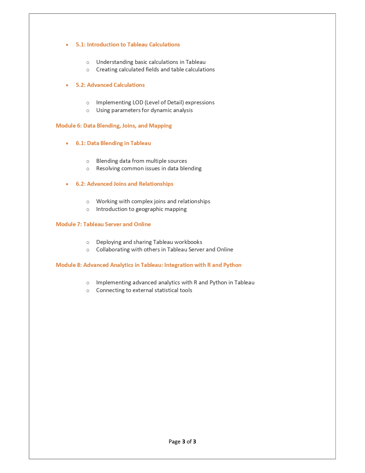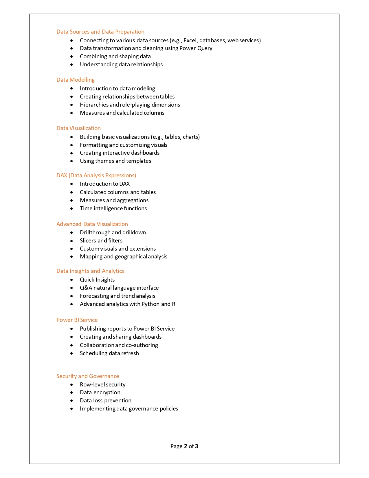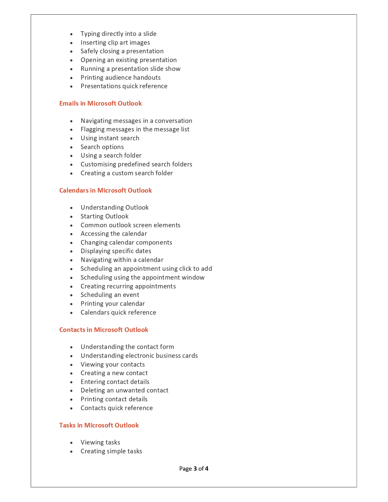 | Training Programmes | No of hours required (Aprox.) | Course Conent |