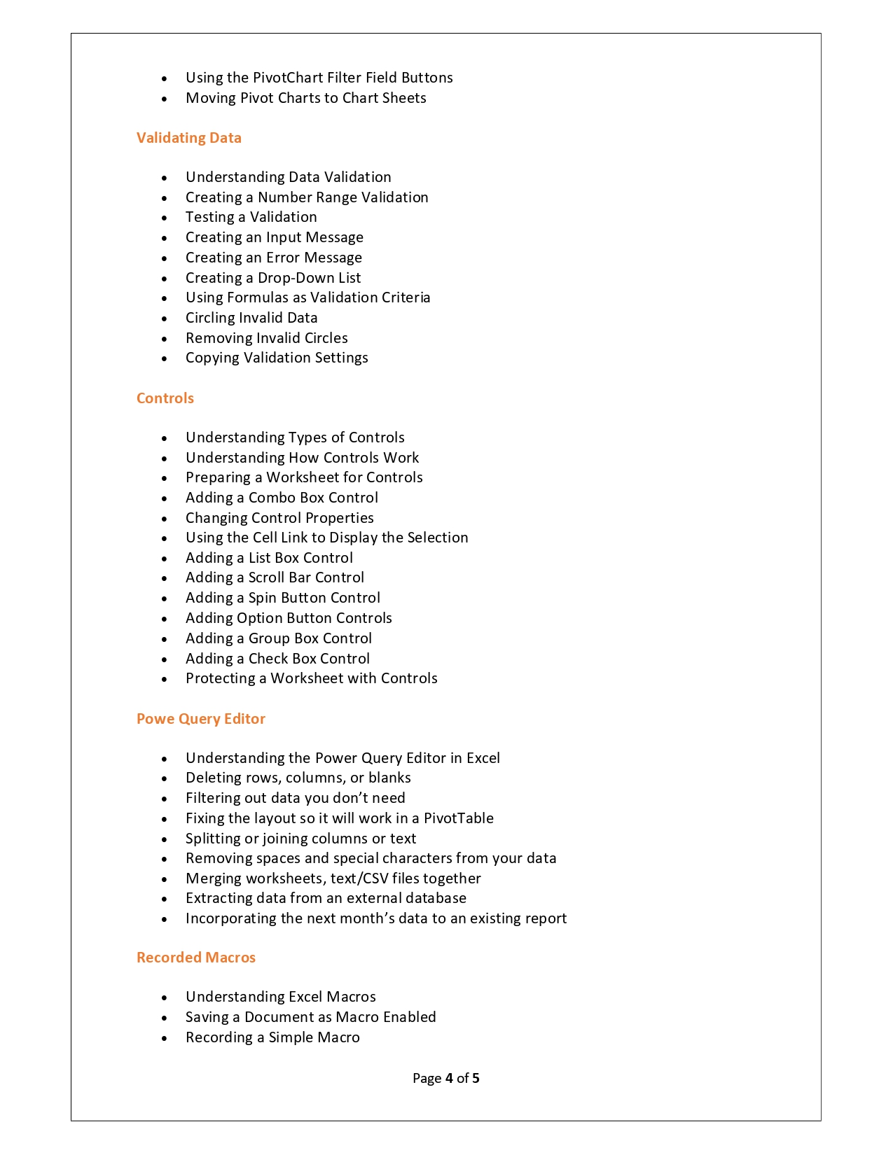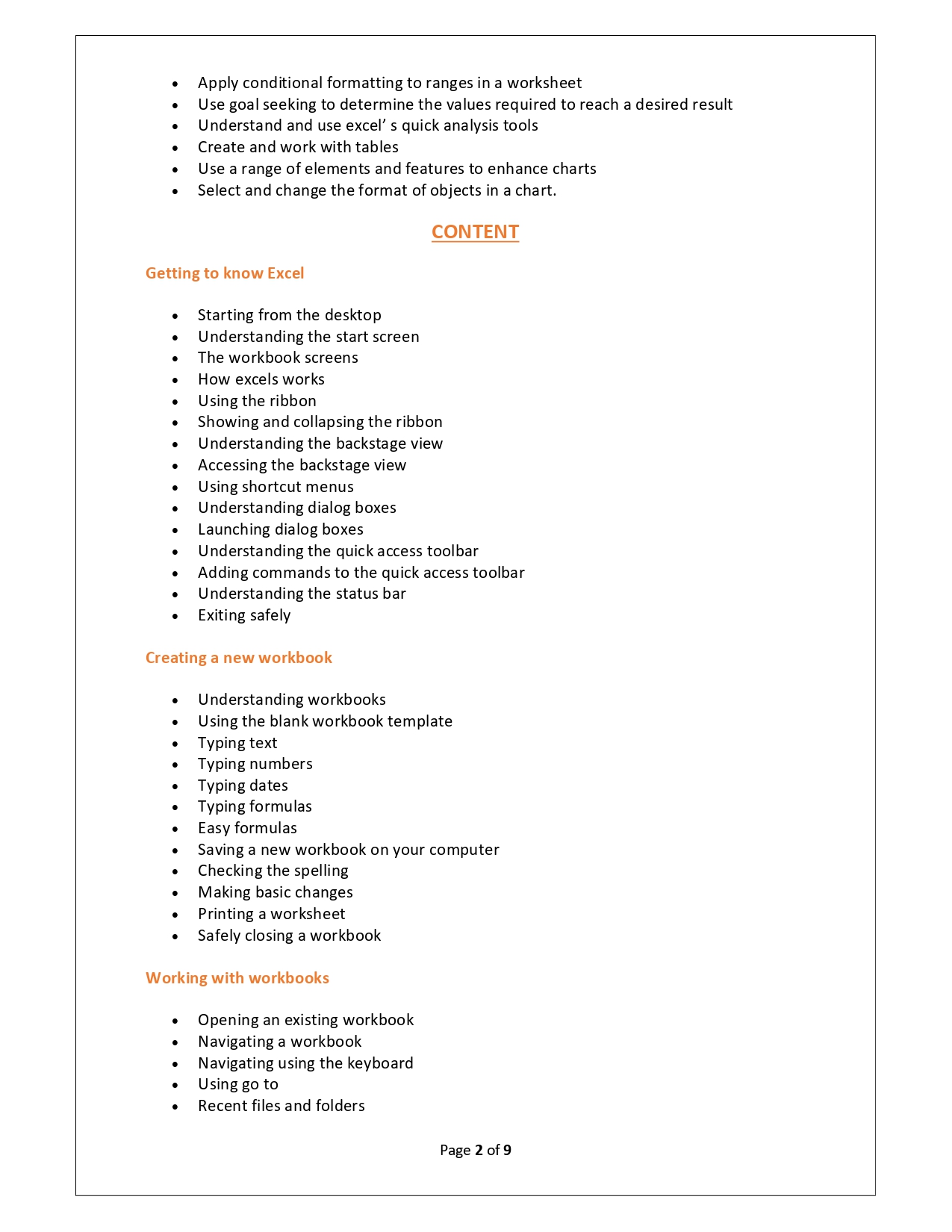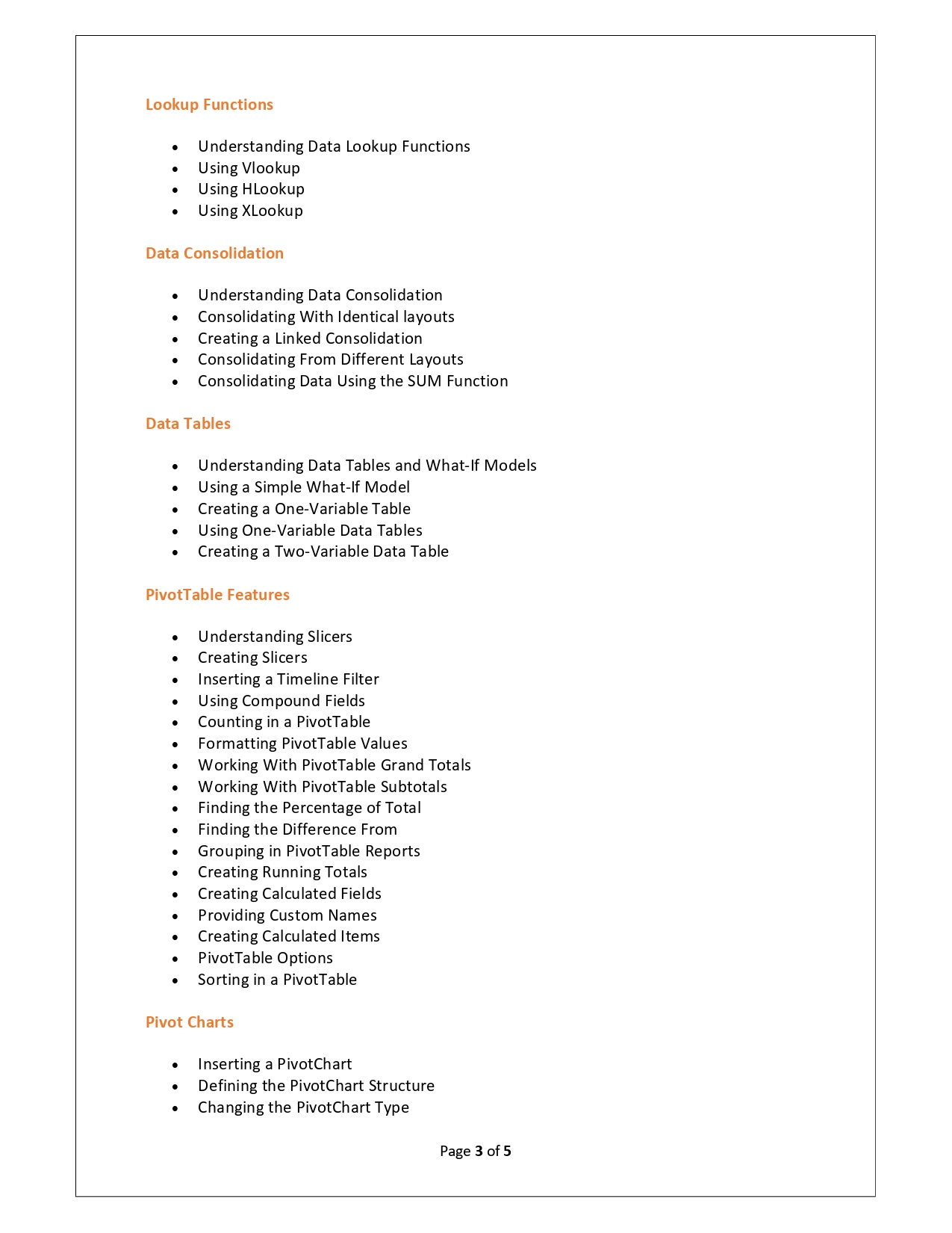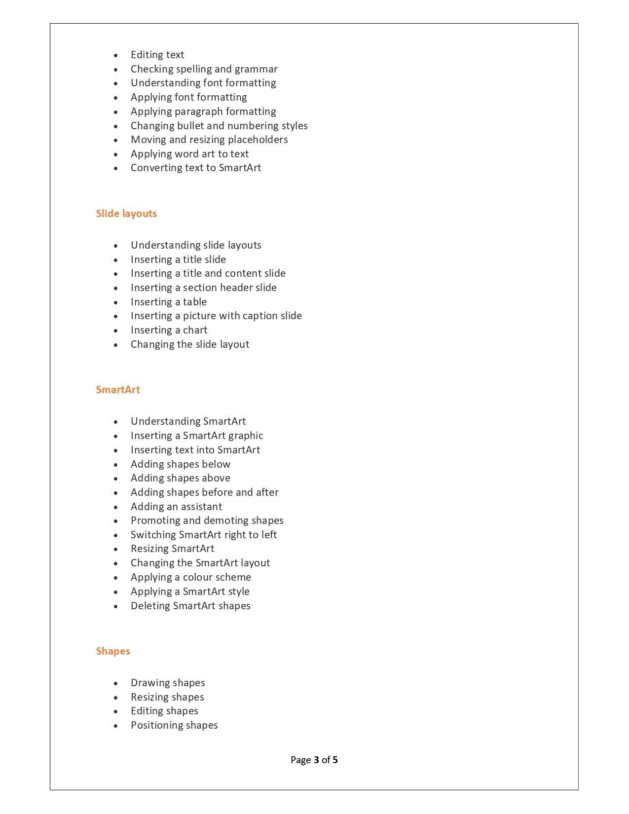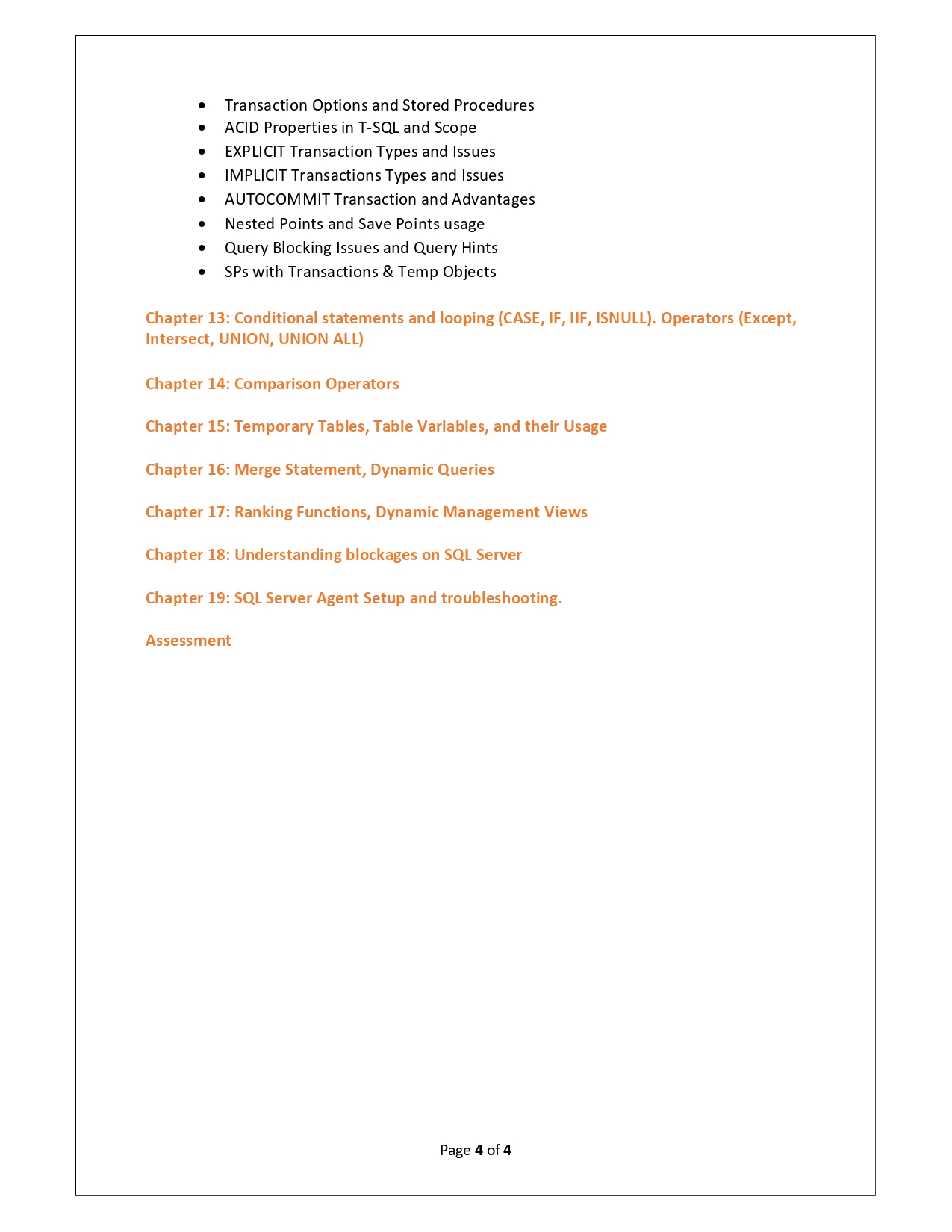 | Training Programmes | No of hours required (Aprox.) | Course Conent |
