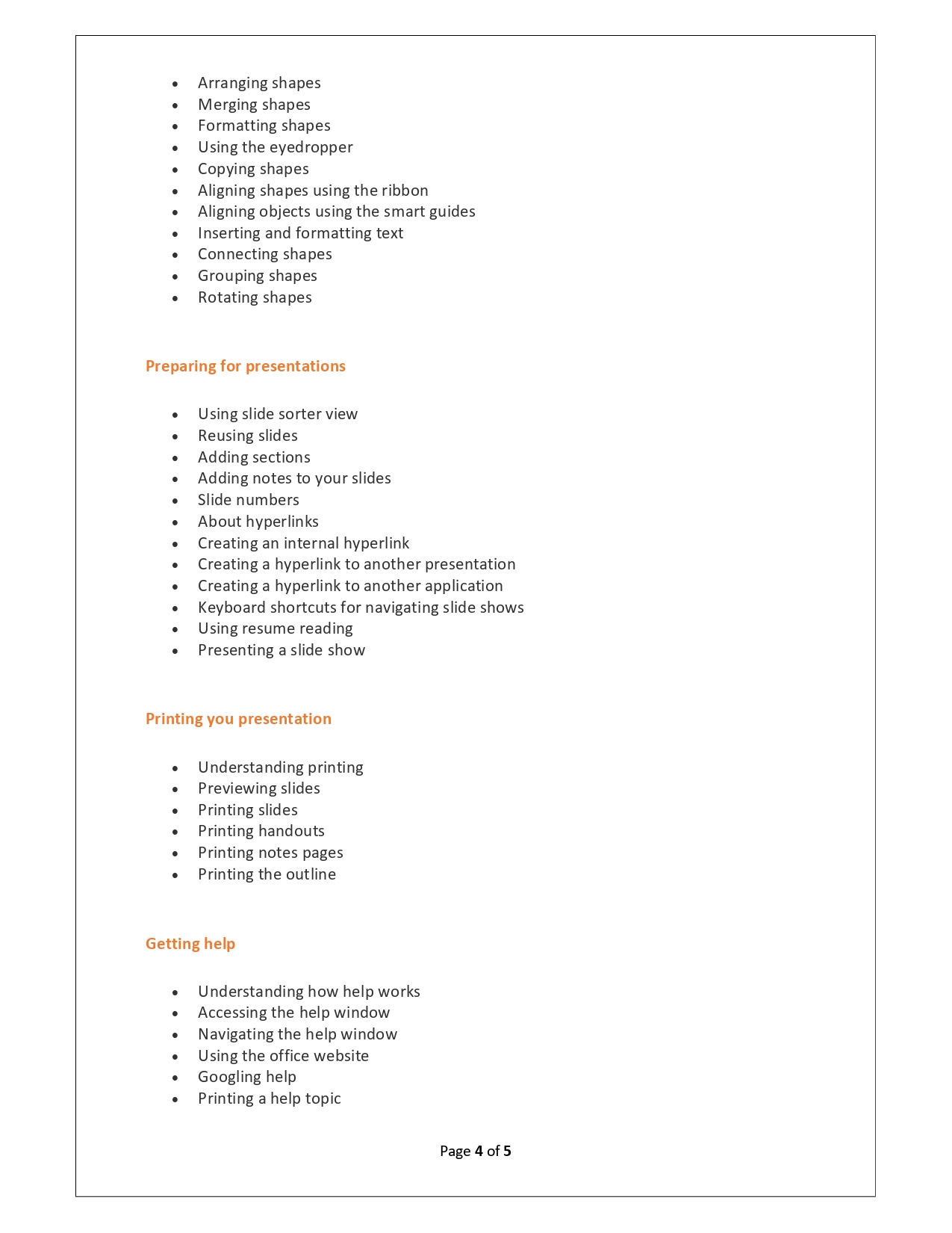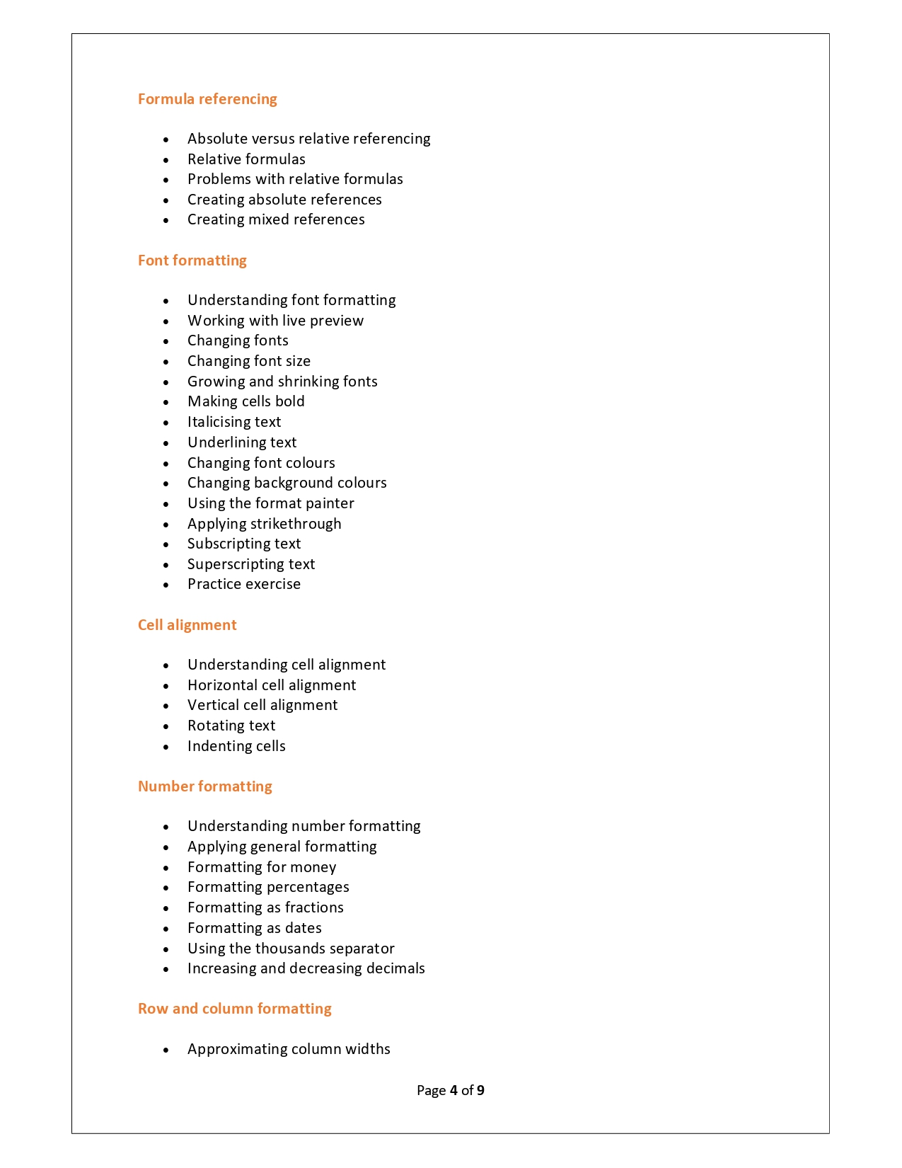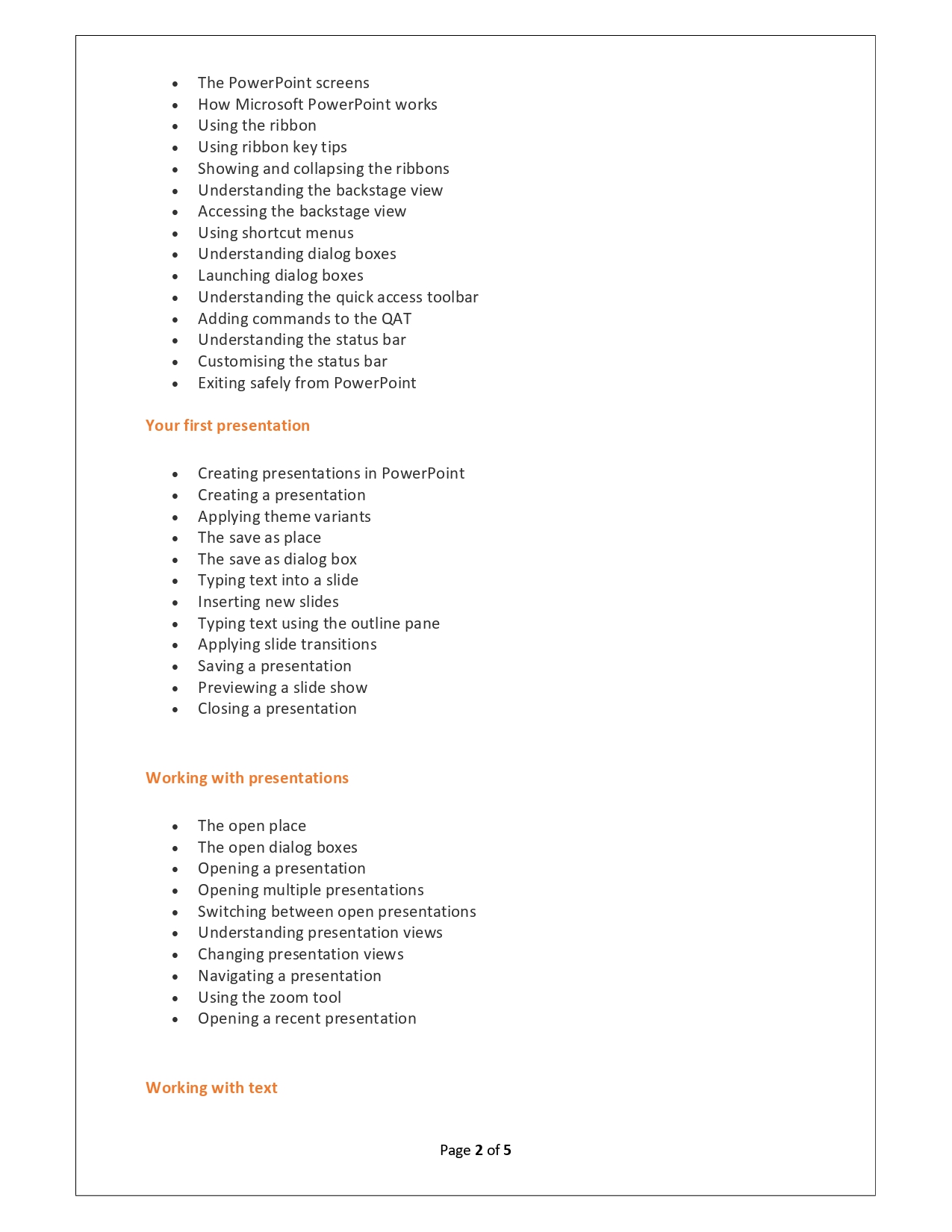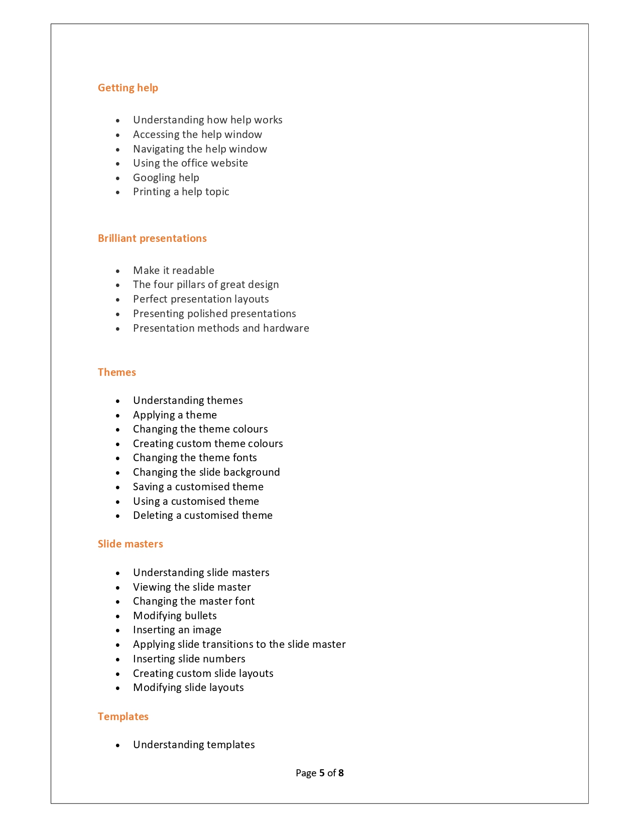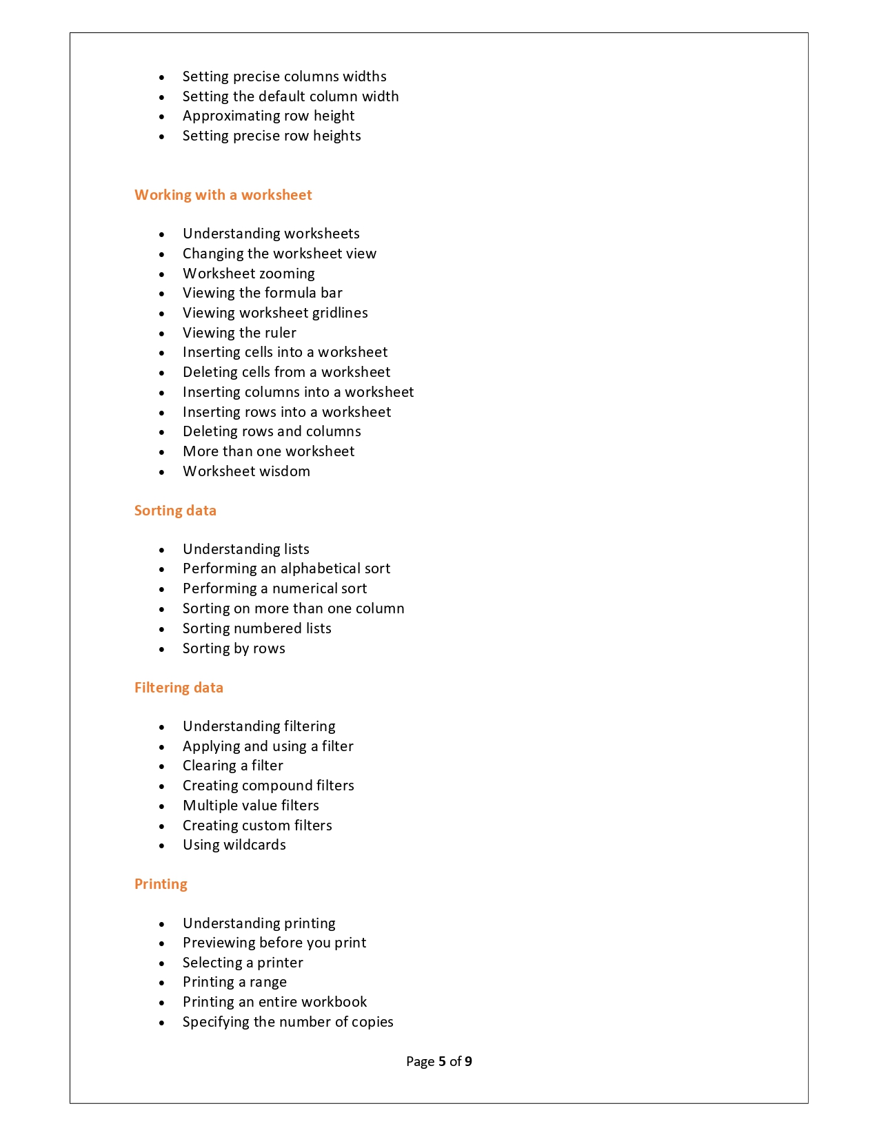 | Training Programmes | No of hours required (Aprox.) | Course Conent |
