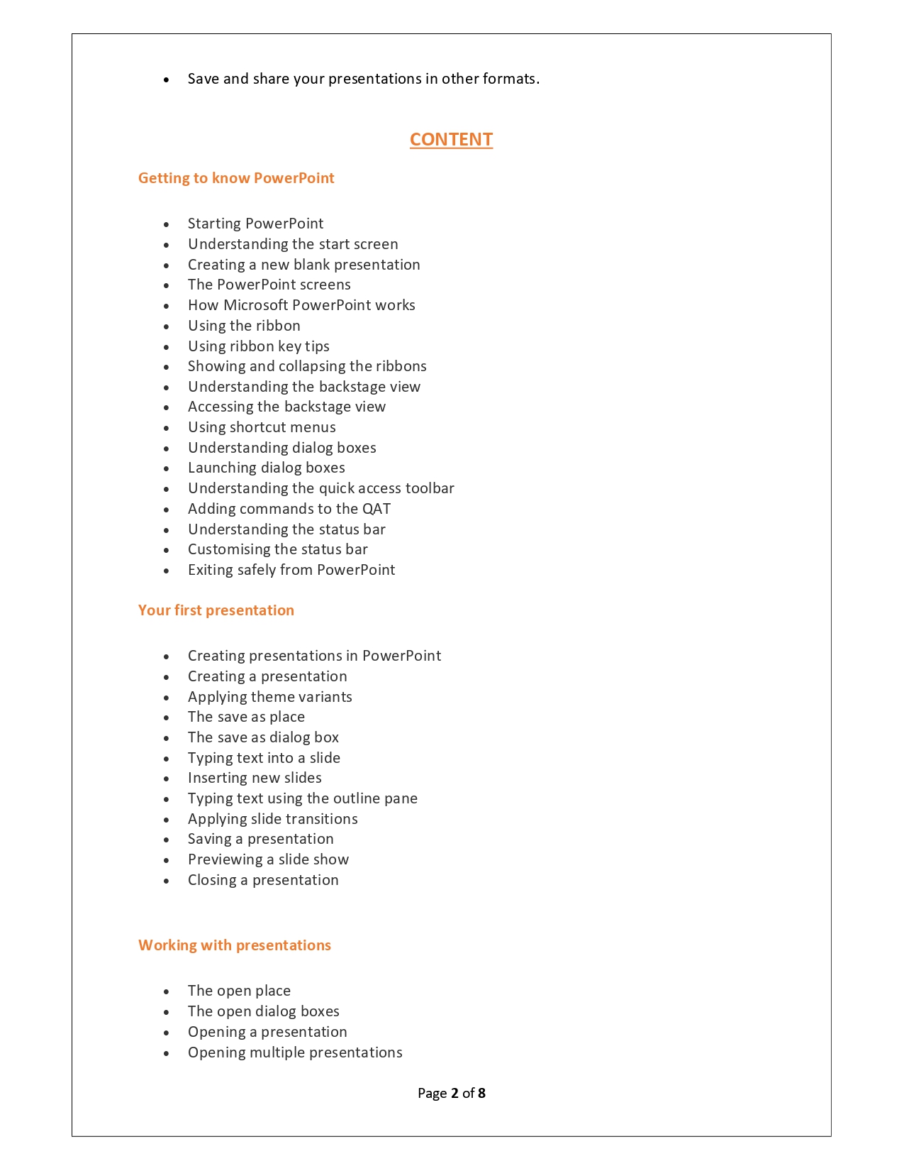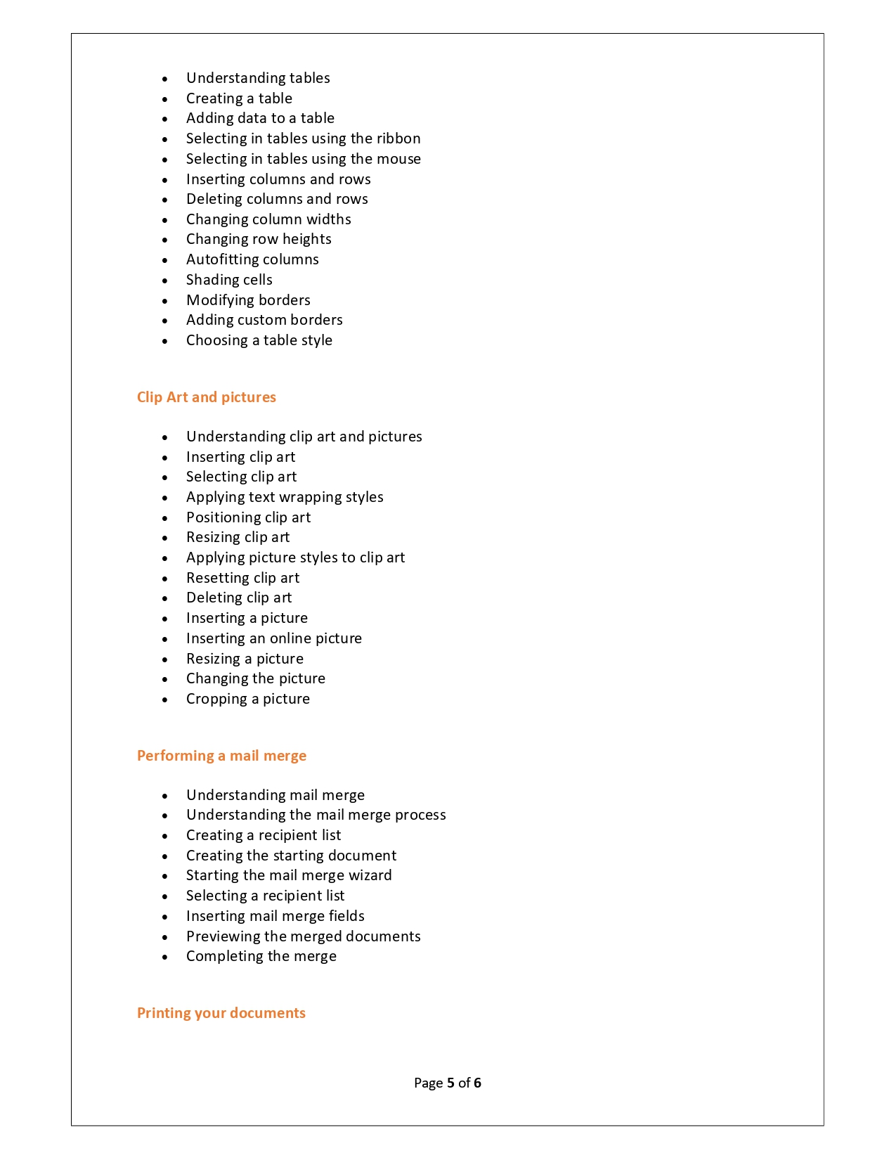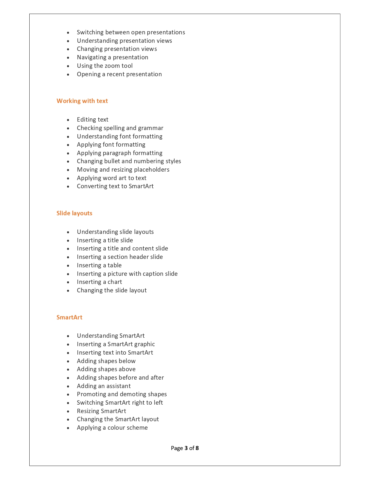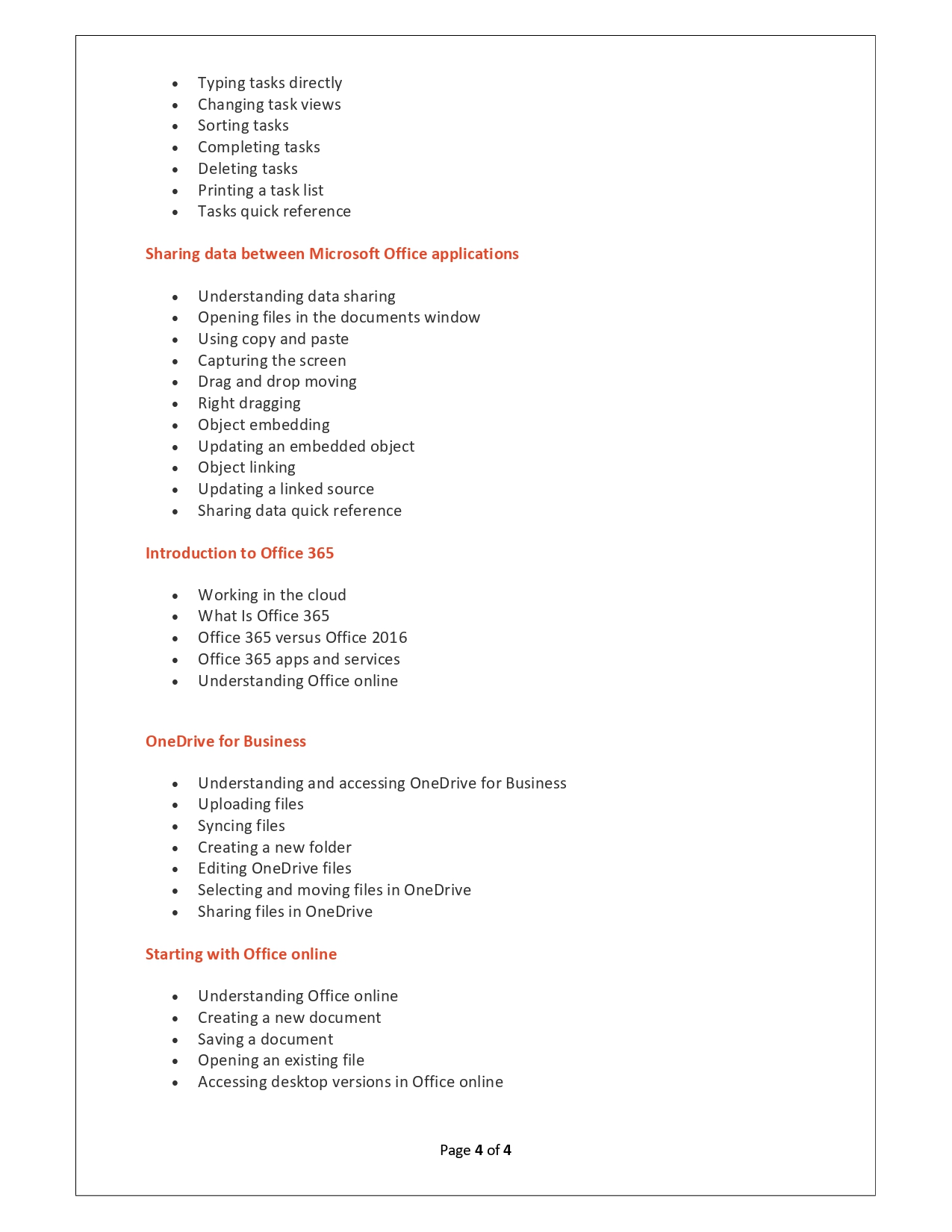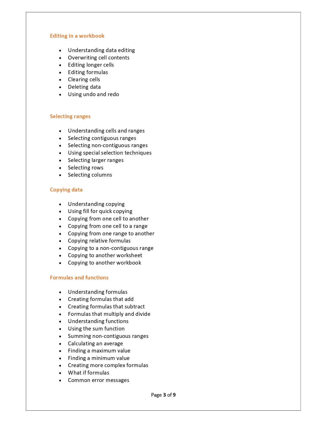 | Training Programmes | No of hours required (Aprox.) | Course Conent |