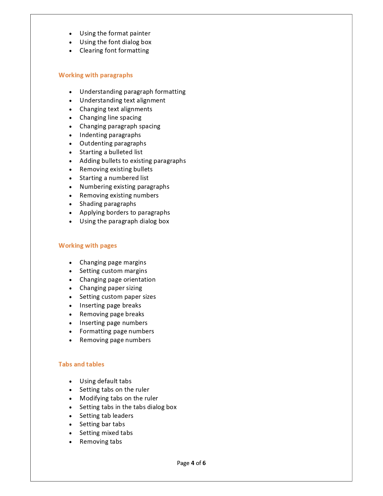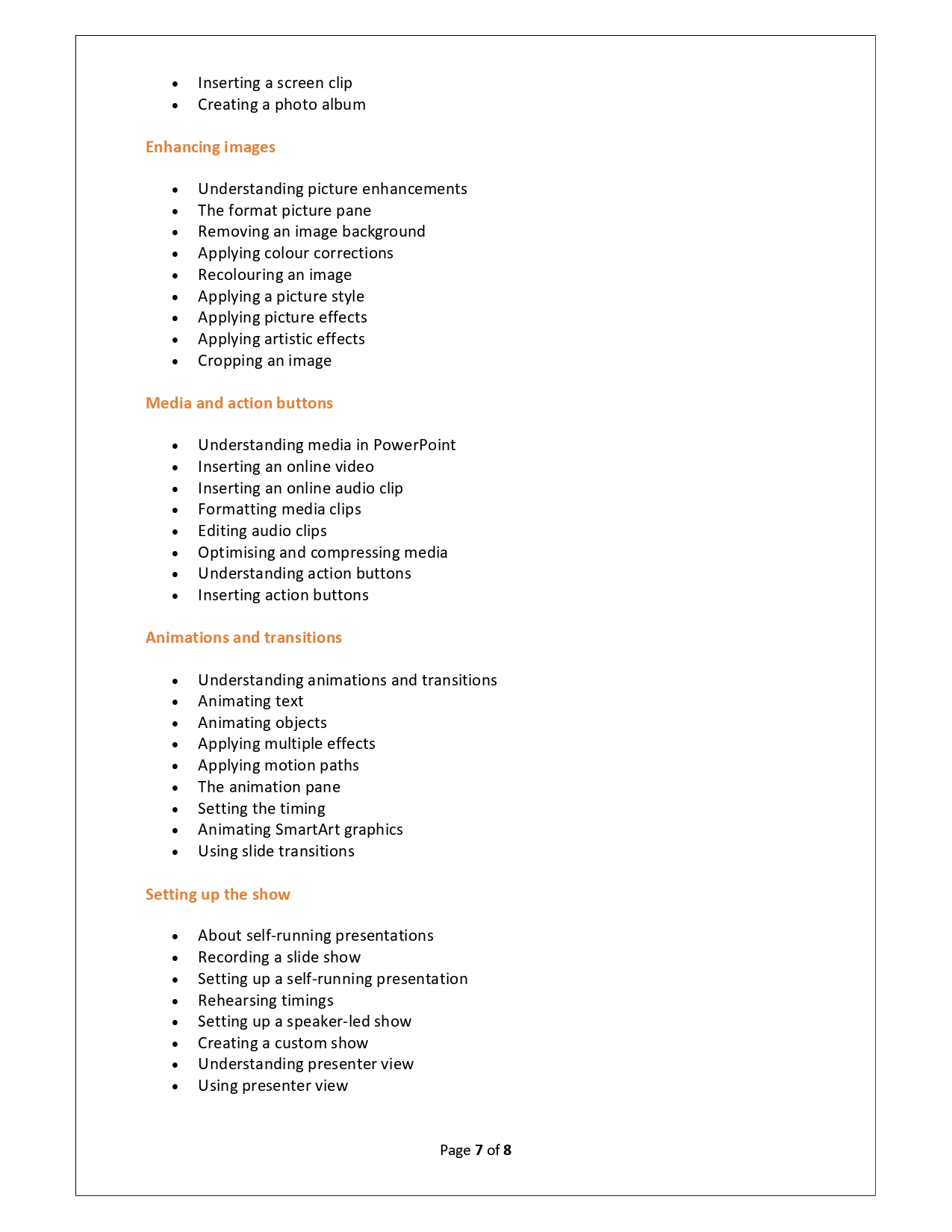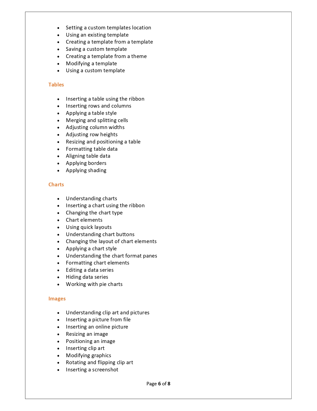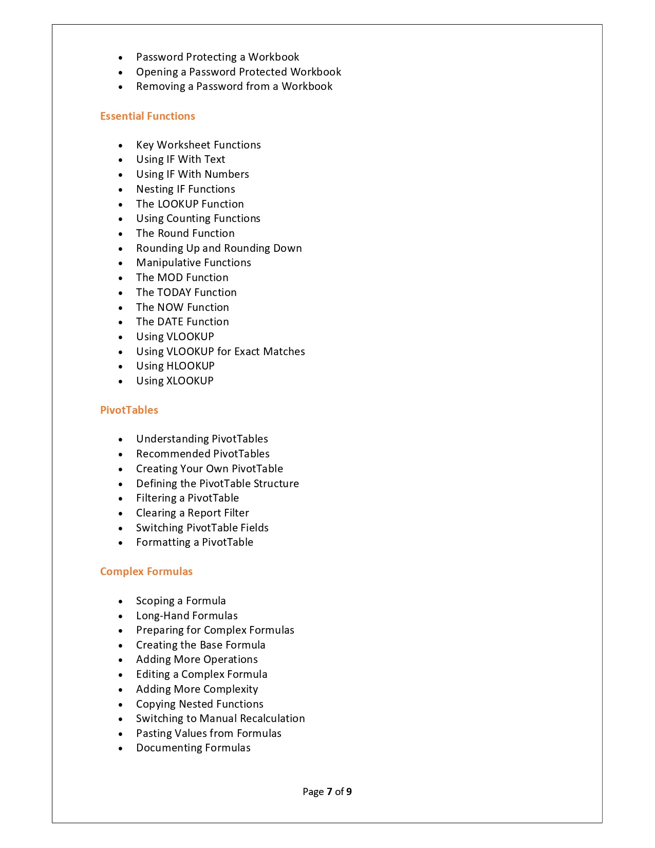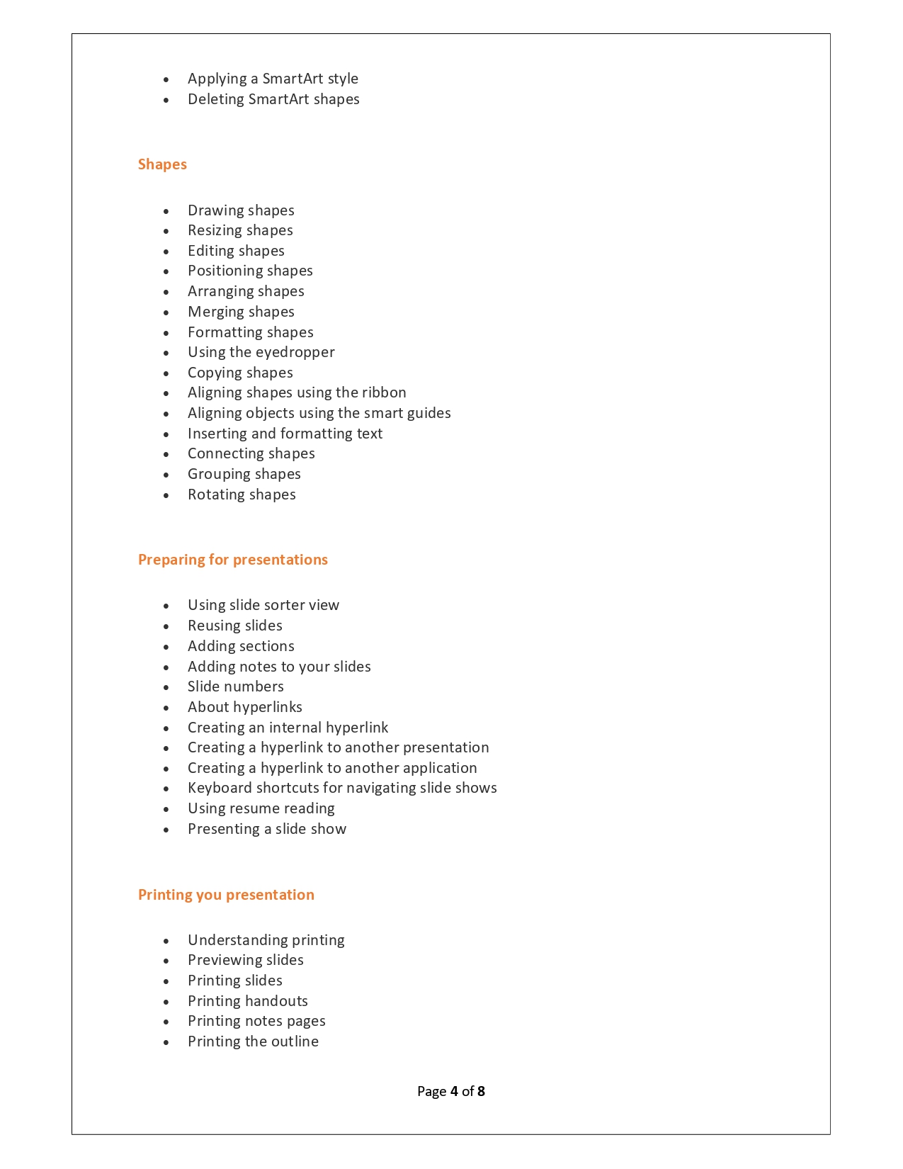 | Training Programmes | No of hours required (Aprox.) | Course Conent |